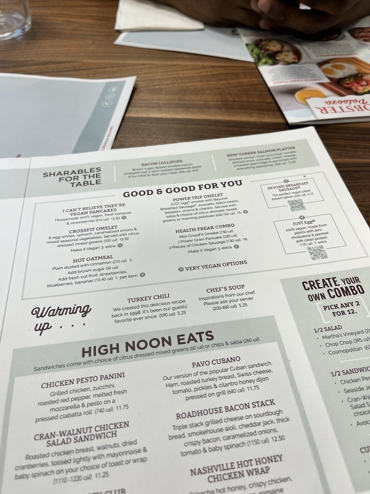 JUST egg omelet with Beyond Breakfast Sausage, avocado, black beans, peppers, onions & cilantro. Served with salsa & choice of citrus dressed mixed greens or morning potatoes (Vegan)