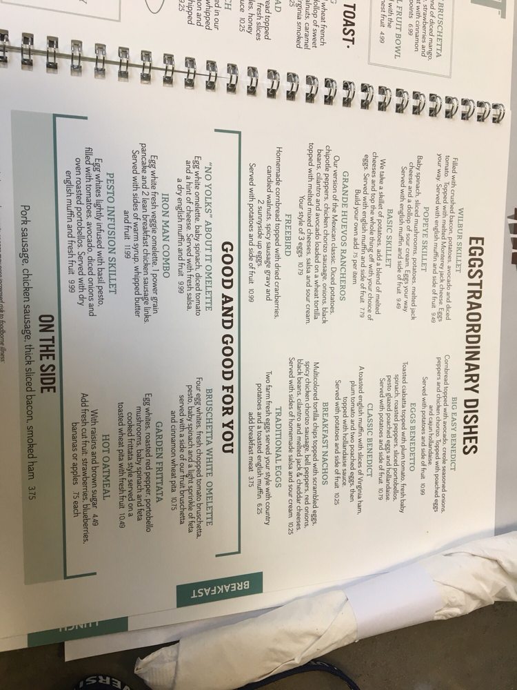 egg omelet, roasted red peppers, baby spinach, chopped sausage & fresh mozzarella, Served with an English muffin & your choice of citrus dressed greens or morning potatoes